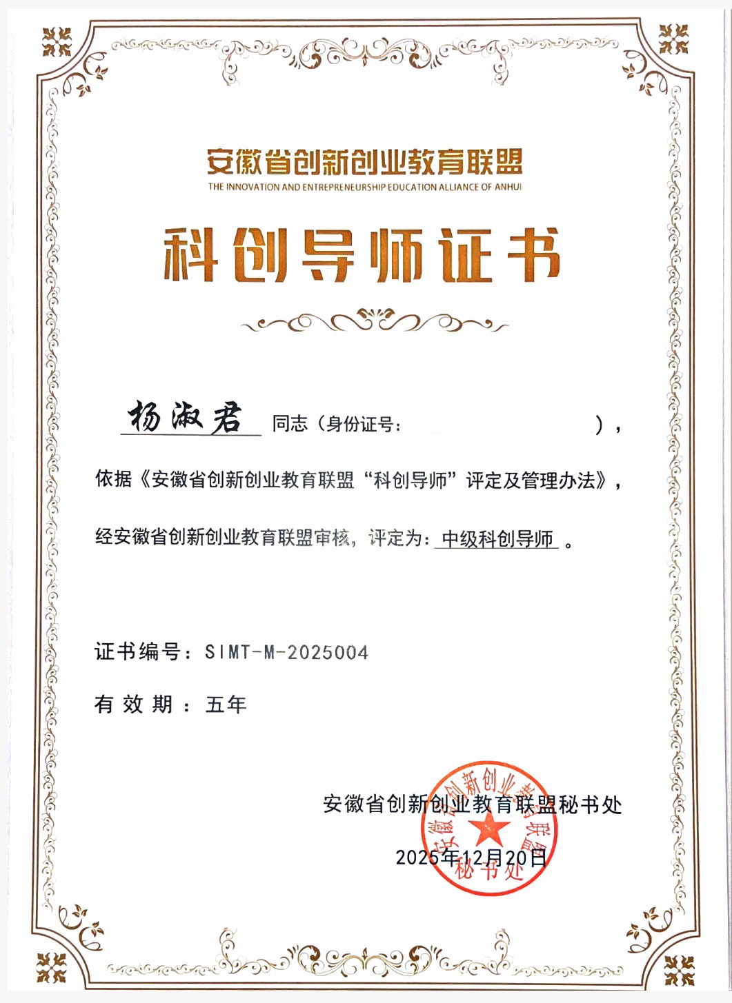本次论坛以“科教赋能,创育兴皖”为主题,围绕创新创业课程体系建设、实践平台搭建、师资培养与项目孵化等议题展开深入交流。在联盟大会表彰环节,会议公布了2025年度安徽省创新创业教育相关表彰名单。我校在联盟单位中荣获“2025年度安徽省科创教育优秀组织奖”,1名教师获评“安徽省中级科创导师”荣誉称号。两项荣誉的获得,是安徽省创新创业教育联盟对我校创新创业教育工作的充分肯定,也彰显了我校在科创人才培养领域的持续深耕。