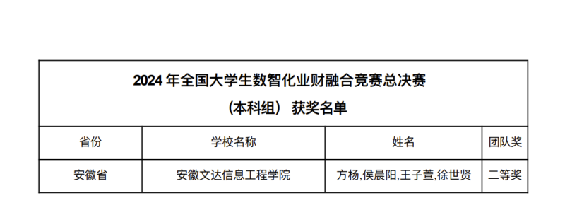 6月1日,由中国商业会计学会主办、江苏理工学院承办、厦门九九网智科技有限公司技术支持的“2024年全国大学生数智化业财融合竞赛”圆满收官。本竞赛含大数据财务技能(python)、管理会计技能二项内容。经过数月的精心准备和激烈的校内选拔赛,会计学院王子萱等四名学生脱颖而出,与海南大学、昆明理工大学、内蒙古财经大学等来自全国各地的百强高校队伍展开了激烈角逐,获得了本科组区域赛二等奖的名次,顺利进入全国总决赛。在总决赛中,荣获全国二等奖,并成为了安徽省的冠军队伍,指导老师张瑞和刘楚璇被评为优秀指导教师。