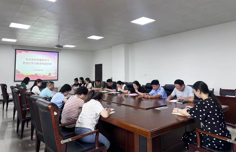 6月28日下午,机关党总支在图书馆第三会议室开展集中理论学习暨党纪学习教育专题党课。会议由机关党总支书记盖筱岚主持,党总支委员、各党支部委员参加。