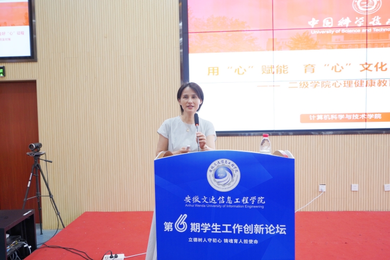 在专家讲座环节,中国科学技术大学计算机科学与技术学院党委副书记宫晓梅就当前严峻的高校学生心理健康教育工作形势进行了深入探讨。武汉东湖学院党委副书记、副校长卢波涛同志分享了“一站式”学生社区建设经验,就持续推动学生社区高质量发展的“三个新实践”进行深入解读和经验分享。