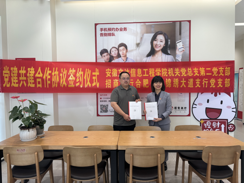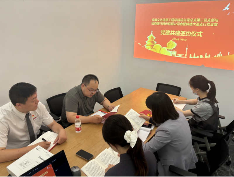 为强化党建共建、资源共享、发展共赢,探索党建共建新模式,7月4日,机关党总支第二党支部与招商银行合肥分行锦绣大道支行党支部在招商银行合肥分行锦绣大道支行会议室进行了党建结对共建签约仪式。双方支委代表、党员同志代表共同参与活动。