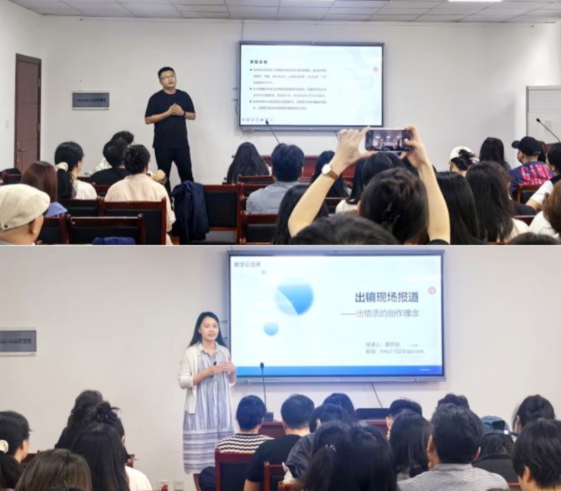 10月4日,教学观摩活动拉开序幕,王雨阳与黄梦喆两位老师带来了《舞台语言表现技巧》与《出境现场报道》两场示范课。王雨阳老师的课堂生动鲜活,通过丰富的案例与精准的指导,将舞台语言的艺术魅力展现得淋漓尽致。黄梦喆老师的课程则紧密对接行业前沿,其严谨的逻辑与生动的现场模拟,充分展现了实践性教学的强大吸引力。观摩现场气氛热烈,与会教师们全神贯注,并在互动环节踊跃提问,就教学方法、课堂设计等与示范教师进行了深入交流。