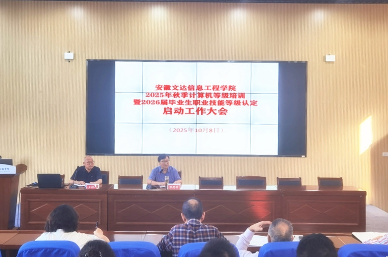 10月8日,学校2025年秋计算机等级培训暨2026届毕业生职业技能等级认定工作启动会议在学校文鼎楼多功能厅召开。常务副校长张穗萌出席会议,各二级学院负责人、副院长,2026届毕业班辅导员参加会议。会议由继续教育学院院长胡正主持。