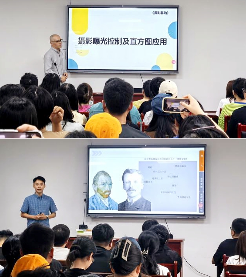10月7日,艺术学院举办第五场集中课程教学观摩活动。本次活动由费飞、洪玮两位教师主讲,分别讲授《摄影曝光控制》与《梵高的艺术特色》两门课程。副校长胡善风赴现场观摩,对活动给予充分关注与肯定。