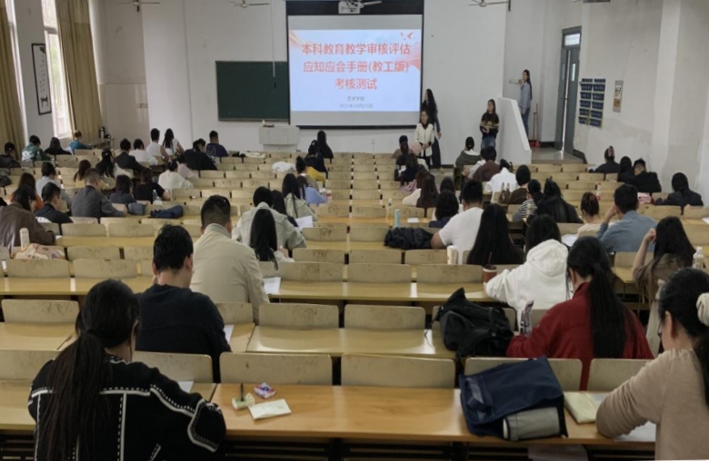 为深入贯彻学校本科教育教学审核评估工作要求,精准检验教职工对审核评估基本知识、指标内涵及学校评建情况的掌握程度,10月15日,艺术学院组织开展本科教育教学审核评估应知应会(教工版)考核测试。院领导班子监考,全体专任教师参加。