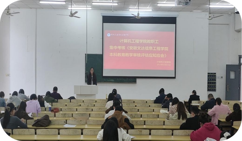 为全面落实学校本科教育教学审核评估工作部署,切实提升全体专任教师对评估知识的掌握深度与应用能力,10月15日下午,计算机工程学院组织全体专任教师开展《安徽文达信息工程学院本科教育教学审核评估应知应会(教工版))》手册集中考试,以“考”验学、以“考”促记、以“考”提能,为学院高质量备战本科教育教学审核评估夯实基础。