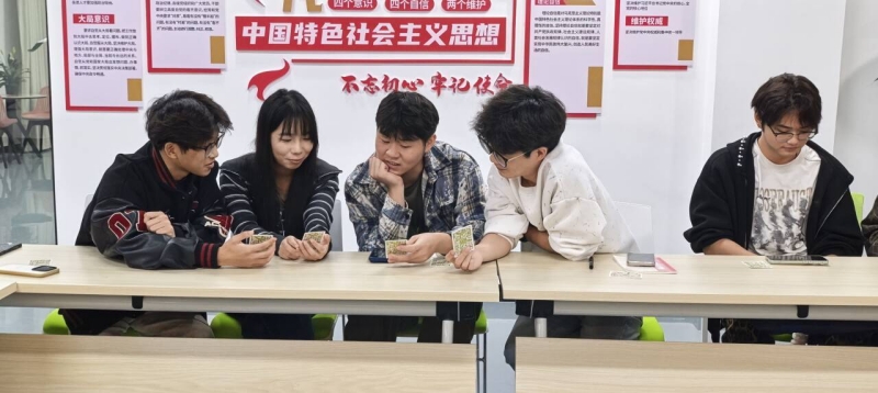 活动前,夏彩虹讲解了活动名称和具体的内容:认识自我是青年成长的第一步,希望通过欧卡这种新颖的互动形式,为同学们提供一个安全、放松的契机,放下日常的理性防御,与潜意识进行一场真诚的对话,从而获得内在的启发与力量。欧卡(OH Cards)作为一种“潜意识投射卡”,如同一面心灵的镜子。在轻松温馨的氛围中,同学们在引导下,通过抽取卡牌、观察图像、自由联想与故事接龙等环节,开启了探索之旅。活动现场,大家时而陷入沉思,时而踊跃分享。在真诚的交流与倾听中,参与的同学们不仅更清晰地看到了自己的内心世界,也感受到了同伴的支持与理解,现场气氛温暖融洽。