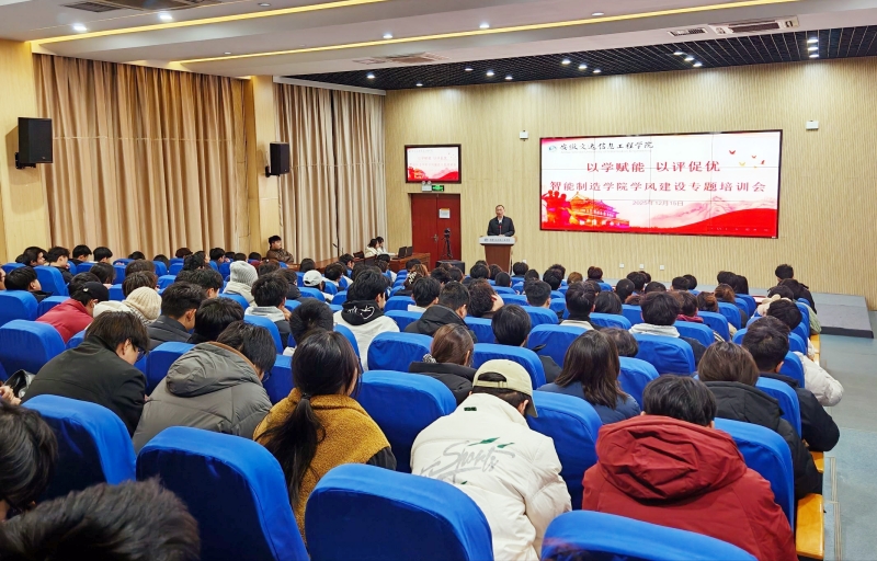 为扎实推进迎评促建工作,强化学院学风建设,明确学生骨干迎评责任,12月15日,智能制造学院在文鼎楼多功能厅召开 “以学赋能 以评促优” 学风建设专题培训会。学院副院长彭玉马担任主讲人,各班级学生干部、党员参加了培训。