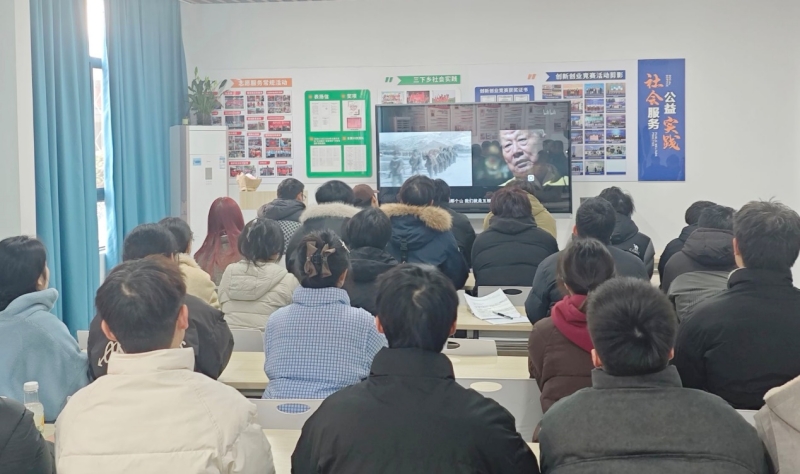 为纪念长津湖战役胜利75周年,传承伟大抗美援朝精神,12月25日中午,电子电气工程学院学生第一、第二党支部在躬行社区党员活动共享空间,组织全体党员集中观看红色纪录片《冰雪长津湖》。