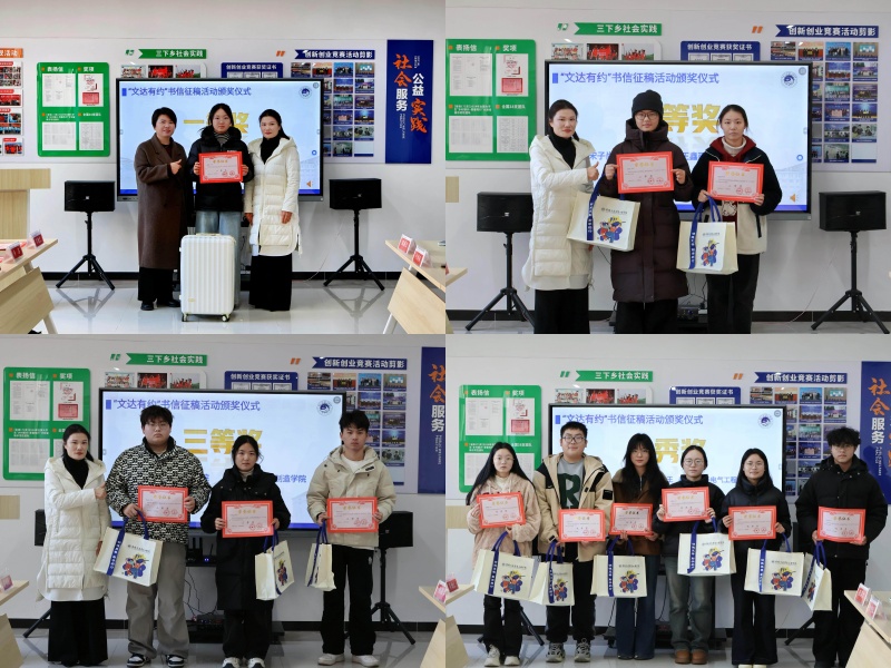 为帮助2025级新生更好地融入校园文化、记录成长心声、展现青春风采,营造积极向上、温暖包容的育人氛围,由学生处、品牌建设中心联合主办的2025级新生“文达有约”书信征稿活动在近日顺利落下帷幕。12月26日中午,活动颁奖仪式在13-14栋躬行社区党员活动室隆重举行,品牌建设中心主任沈贾、学生处副处长李品以及获奖同学共同参与,为此次历时近两个月的书信征集活动画上圆满句号。