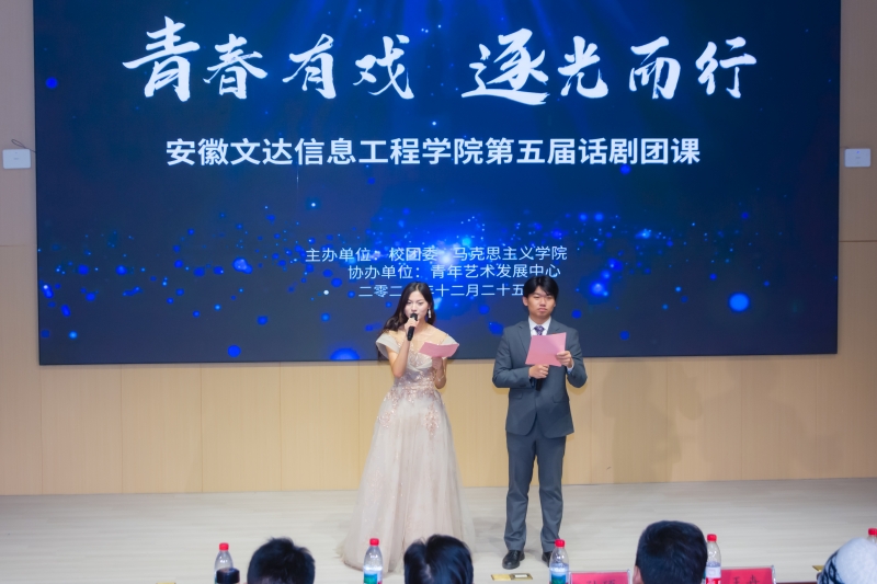 为落实五育并举育人方针,推动大思政课创新实践,教育引导团员青年传承红色基因、勇担强国使命,12月25日,第五届“青春有戏,逐光而行”话剧团课大赛在文鼎四楼AI大思政中心隆重举办。来自各个二级学院的参赛团队同台竞技,200余名师生代表齐聚现场,共赴一场红色文化与青春风采交融的思政盛宴。