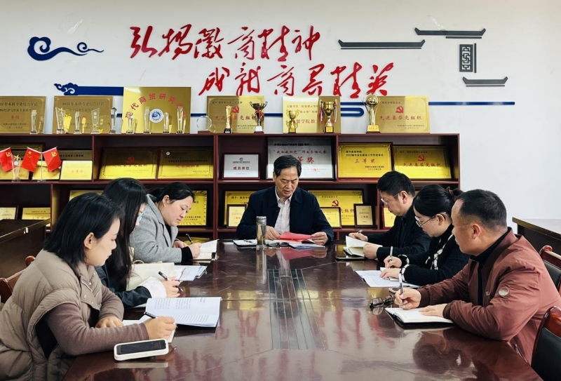 3月25日,商贸学院党总支树立和践行正确政绩观学习教育专题读书班在敬梓楼215会议室正式开班。党总支书记、院长栾敬东主持读书班开班式并讲话,党政领导班子成员、党总支委员会全体成员及各党支部书记参加学习。
