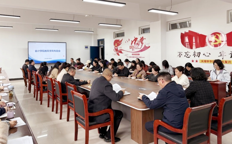 4月8日,会计学院在学院会议室召开教风学风建设专题会。执行院长石惠惠、党总支书记刘宏、副院长刁建刚及全体教职工参加会议。