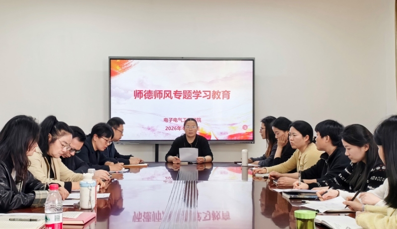 为持续强化教师队伍思想政治与师德师风建设,扎实推进立德树人根本任务落地见效,4月16日下午,电子电气工程学院开展师德师风专题学习教育。会议由党总支书记兼院长杨红兰主持,全体教职工参加。
