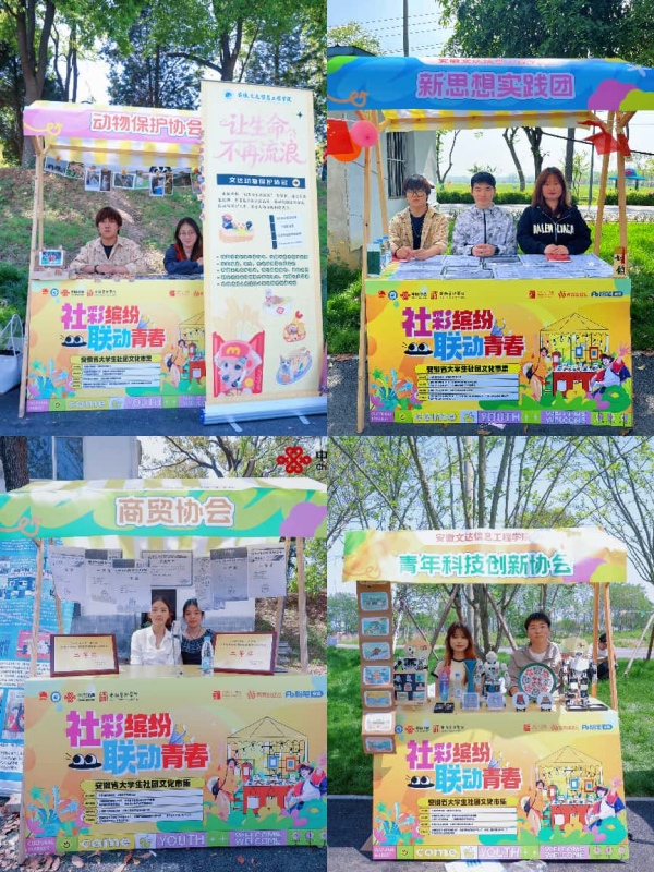 4月18日至19日,由共青团安徽省委、安徽省学生联合会主办的“‘社’彩缤纷 ‘联’动青春”安徽省大学生社团文化市集在合肥顺利举办。我校4个社团作为2024—2025学年安徽省“活力社团”受邀参展,与全省百余所高校的优秀社团同台竞技、交流互鉴,充分彰显了学校在大思政育人与五育并举教育理念下的育人成效。