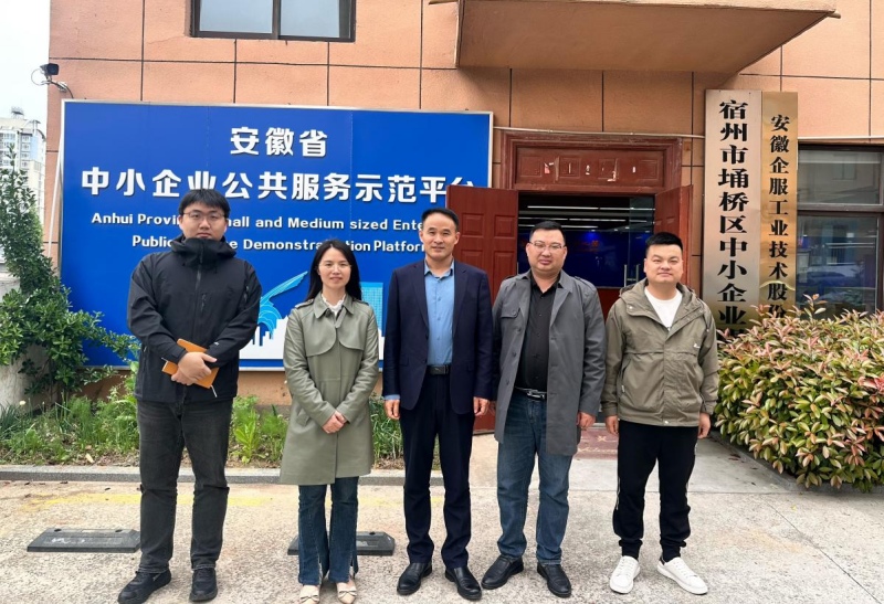 在安徽企服工业技术股份有限公司(宿州市埇桥区中小企业服务中心),董事长张双标、副总经理赵光亮、技术总监刘帅等接待考察团。双方重点围绕知识产权申请、高新技术企业申报及校企合作等事宜进行了深入探讨。