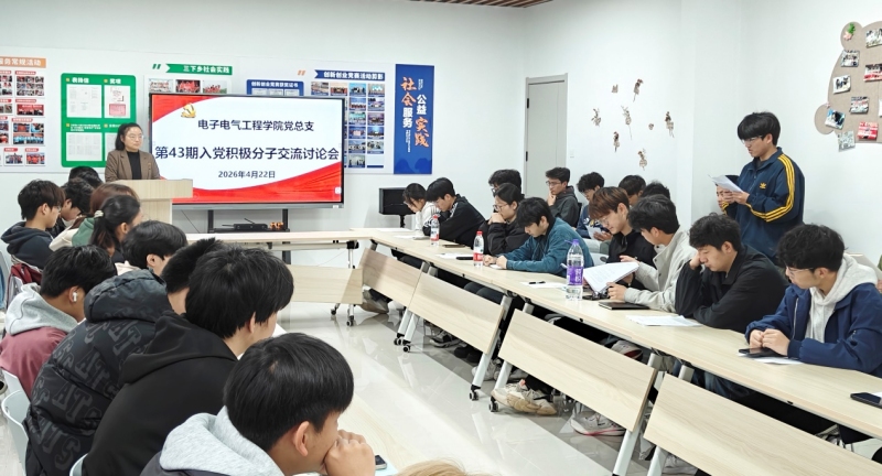 为进一步加强入党积极分子教育培养,引导青年学生弘扬优良校风学风,充分发挥先锋模范作用,4月22日下午,电子电气工程学院党总支开展入党积极分子专题交流讨论。本次活动由学院学生第一党支部书记赵萍主持,第43期入党积极分子培训班全体学员参加。