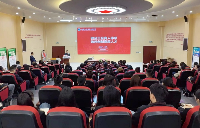 为深入贯彻落实立德树人根本任务,扎实推进“三全育人”综合改革,全面提升新时代高校育人工作质量与水平,4月23日,我校特邀南京信息工程大学原党委副书记、副校长王尧教授作题为“健全三全育人体系,培养创新素质人才”的专题报告。宣传部、人事处、学生处等职能部门负责人,各二级学院党总支书记、副书记及全体辅导员齐聚一堂、聆听学习。报告会由校党委副书记、副校长、纪委书记唐立军主持。