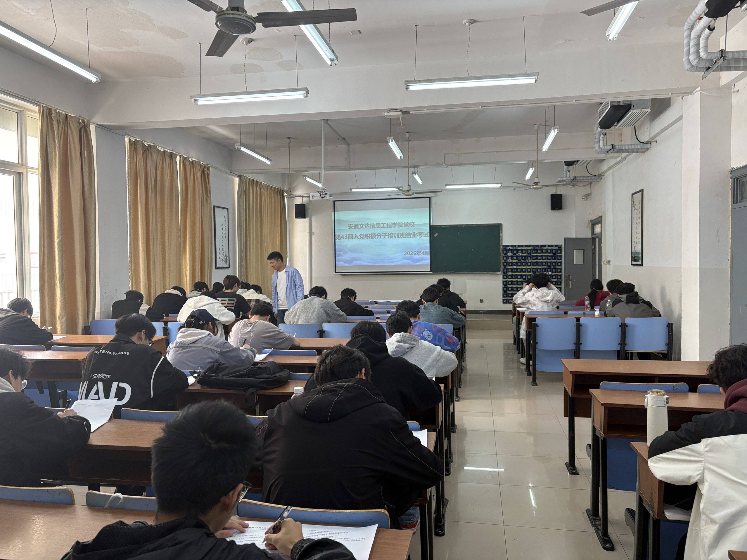 4月24日中午,党校第43期入党积极分子培训班结业考试在庄子楼、天佑楼等教学区域有序举行。本次考试共设置9个考场,700余名入党积极分子参加考试。