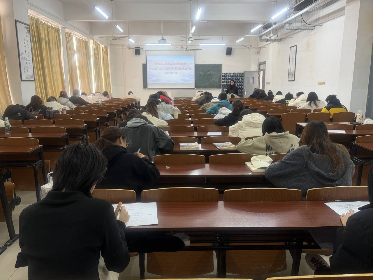 11月28日中午,党校第42期入党积极分子培训班结业考试在庄子楼、天佑楼等教室举行,分10个考场,共500余名入党积极分子参加考试。