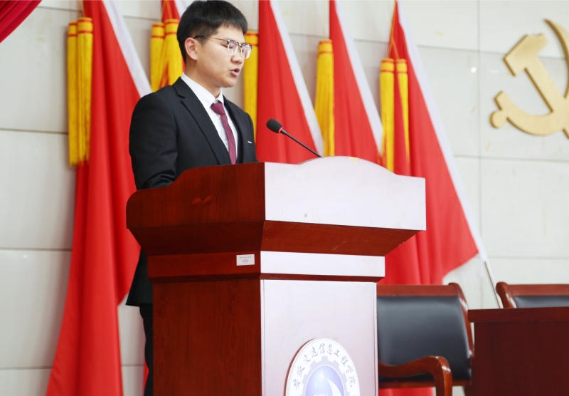 计算机工程学院2022级计算机科学与技术专业彭志成代表积极分子学员发言。他表示将认真学习党的基本知识和基本理论,用理论武装大脑,提升思想觉悟和个人综合素养,坚定共产主义理想信念,为成为一名共产党员做好充分的思想准备。