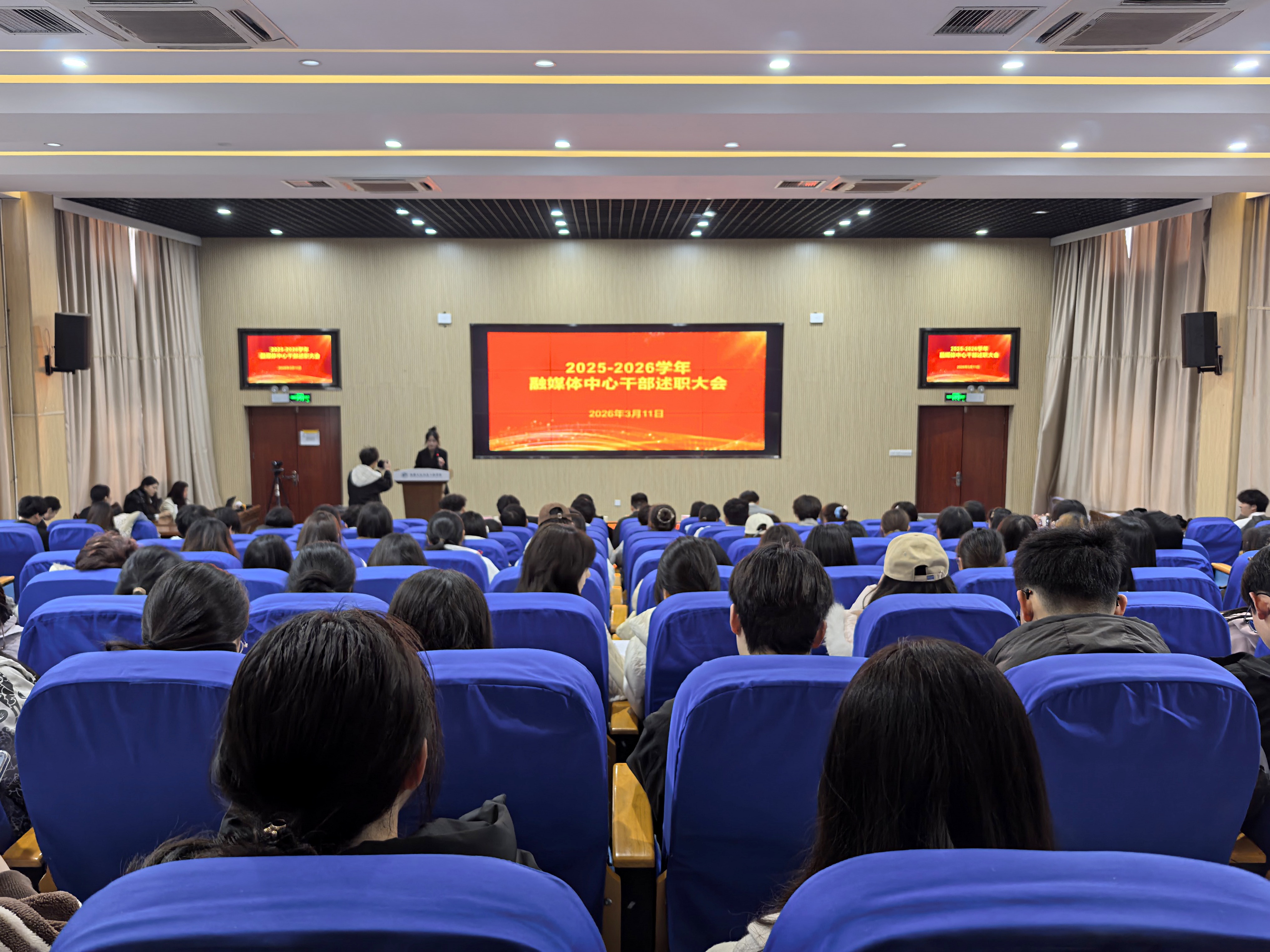 3月11日,学校融媒体中心2025-2026学年干部述职大会在文鼎楼多功能厅召开。校党委委员、党委宣传部部长沈宗平,融媒体中心指导老师方丹、徐子韦,融媒体中心全体成员参会。会议由融媒体中心负责人徐文静主持。