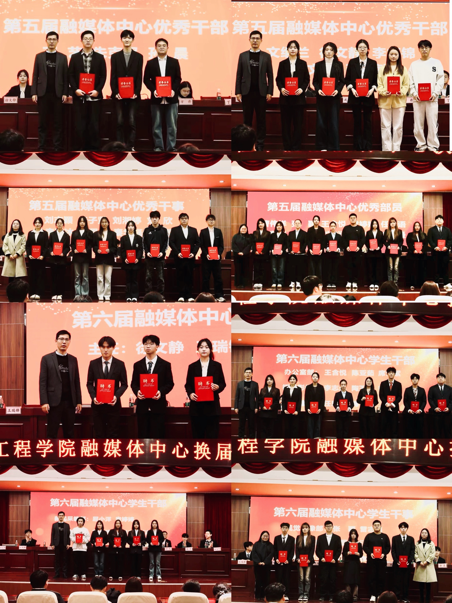 方丹宣读了《关于表彰2024-2025学年融媒体中心优秀学生的决定》,徐子韦宣读了《关于2025-2026学年融媒体中心学生干部任职的决定》。与会老师共同为获奖学生和新任学生干部颁发了证书和聘书。