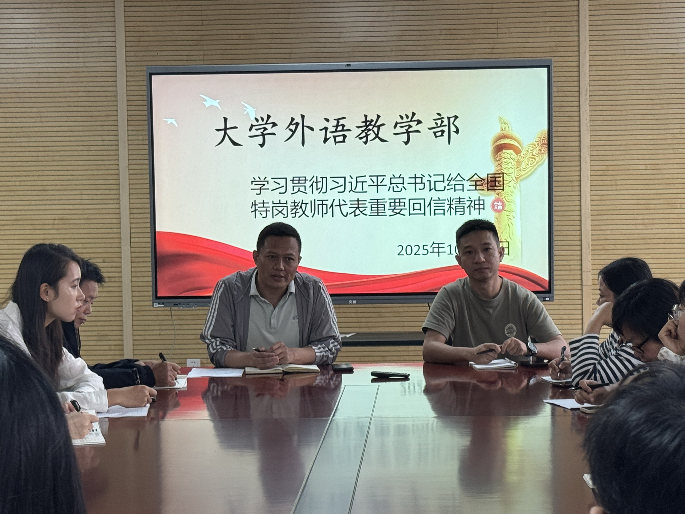 2025年10月11日,大外部举行学习贯彻落实习近平总书记给全国特岗教师代表重要回信精神座谈会。座谈会由大外部主任孔标主持。孔标指出,党的十八大以来,以习近平同志为核心的党中央坚持把教育作为国之大计、党之大计。习近平总书记提出一系列新理念新思想新观点,深刻回答了新时代教育事业发展的一系列重大理论和实践问题,为我们做好工作指明了前进方向、提供了根本遵循。