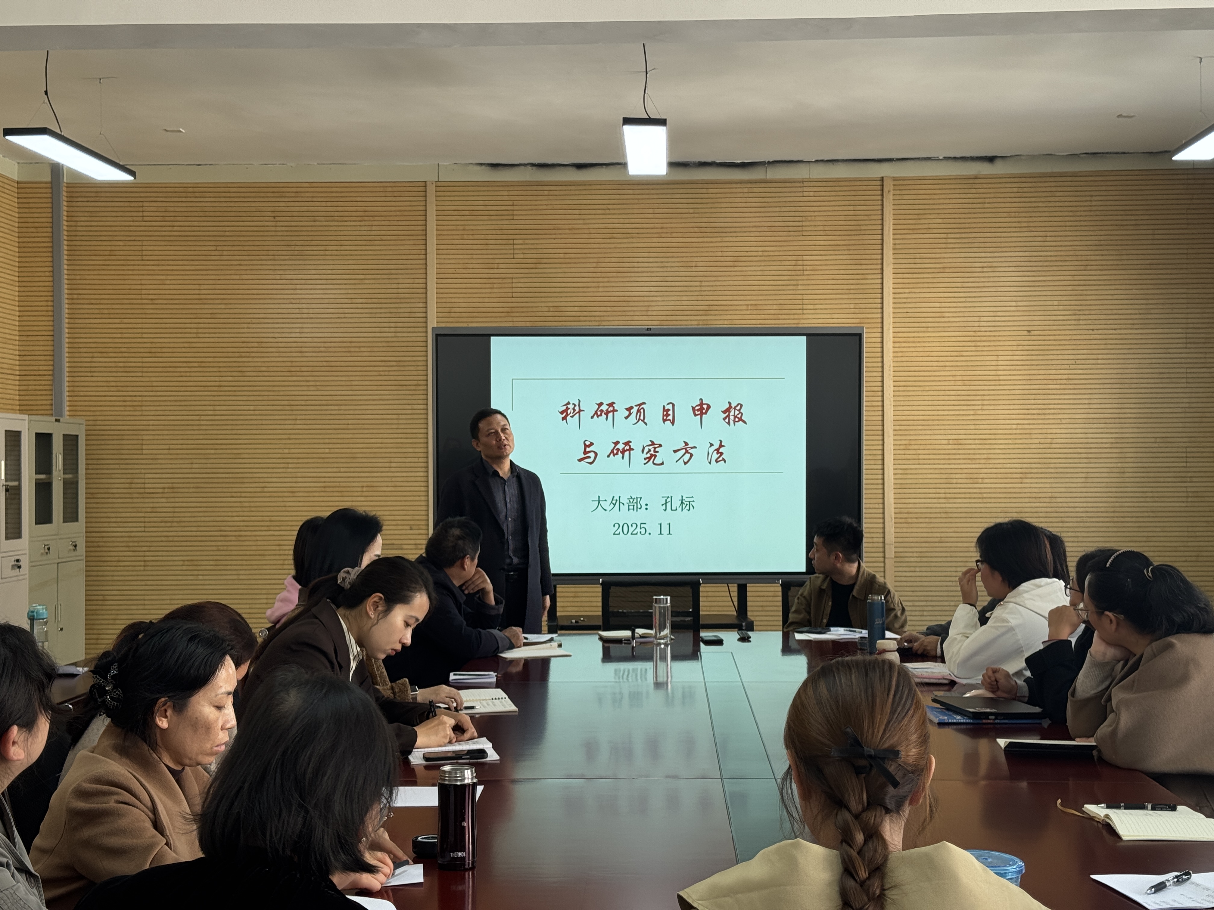 • 孔标主任首先明确了科研对教师专业成长、教学质量提升的支撑作用;在项目申报环节,结合最新申报指南,详细讲解了“研读指南找方向、前期积累做准备、精准选题定框架”的实操步骤,并以近年成功立项案例为例,解析了选题表述、论证逻辑的技巧;最后分享了文献检索、实证研究等科研方法的实用策略,全程理论结合实际,内容兼具指导性与可操作性。