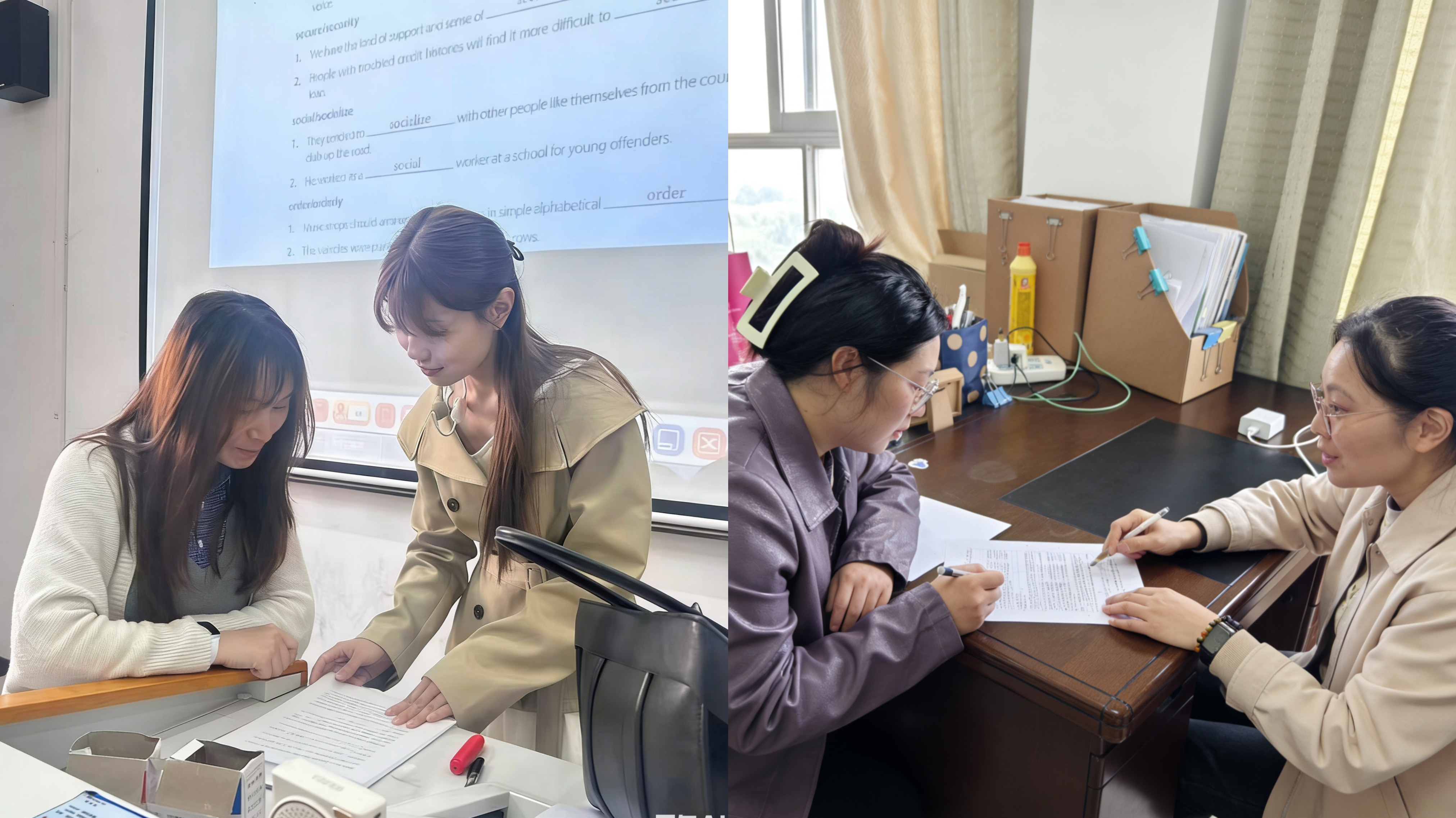 教研室教师立足学生实际,针对两项赛事特点,为参赛学生量身定制辅导方案。围绕“用英语讲中国故事”大赛,教师一对一指导学生打磨演讲稿,优化英文表达,挖掘文化内涵,提升跨文化传播能力;针对全国大学生英语竞赛,聚焦词汇、阅读、写作等核心模块,逐题解析、查漏补缺,分享应试技巧,夯实语言基础。