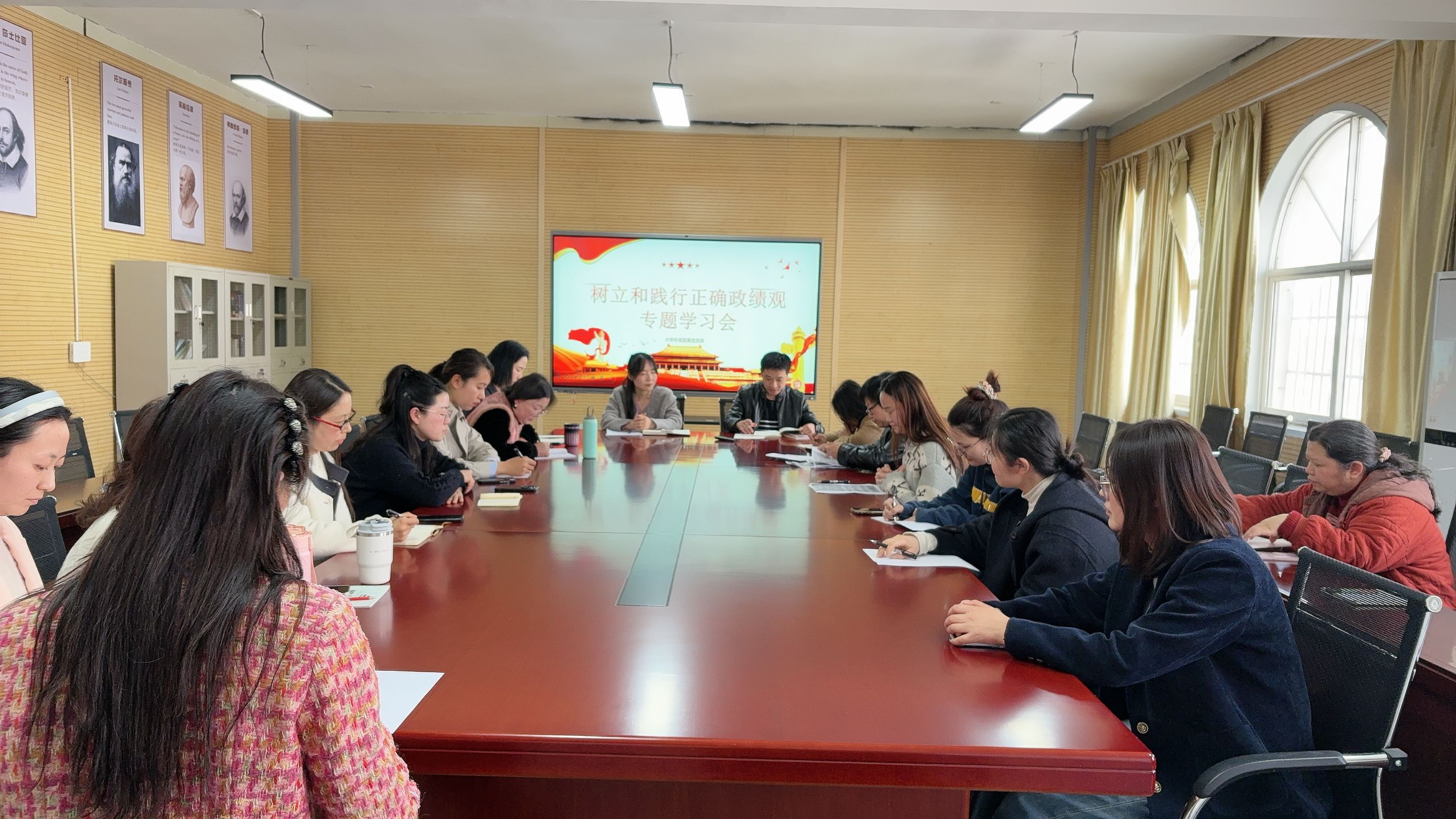 3月25日下午,大学外语教学部在长庚楼5楼会议室召开支部大会,专题学习树立和践行正确政绩观相关内容,支部书记王俊义主持会议,全体教师参会。
