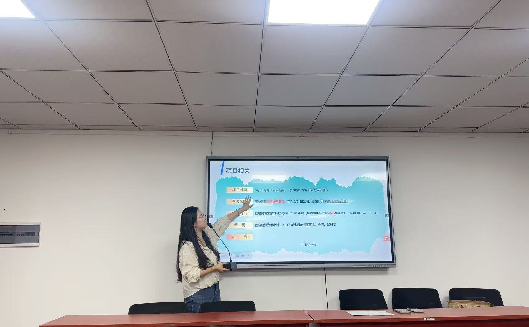 宣讲会伊始,国际合作处颜皖粤老师结合学校“培育具有全球视野的高素质人才”的办学目标,强调了该项目的核心价值:“赴美带薪实习项目是理论与实践结合的重要载体,能让同学们在真实职场场景中锤炼能力、拥抱多元文化,这与我校推进国际化办学理念高度契合”。同时,她介绍了学校与合作项目的长期良好合作基础,为学子参与项目提供了可靠保障。