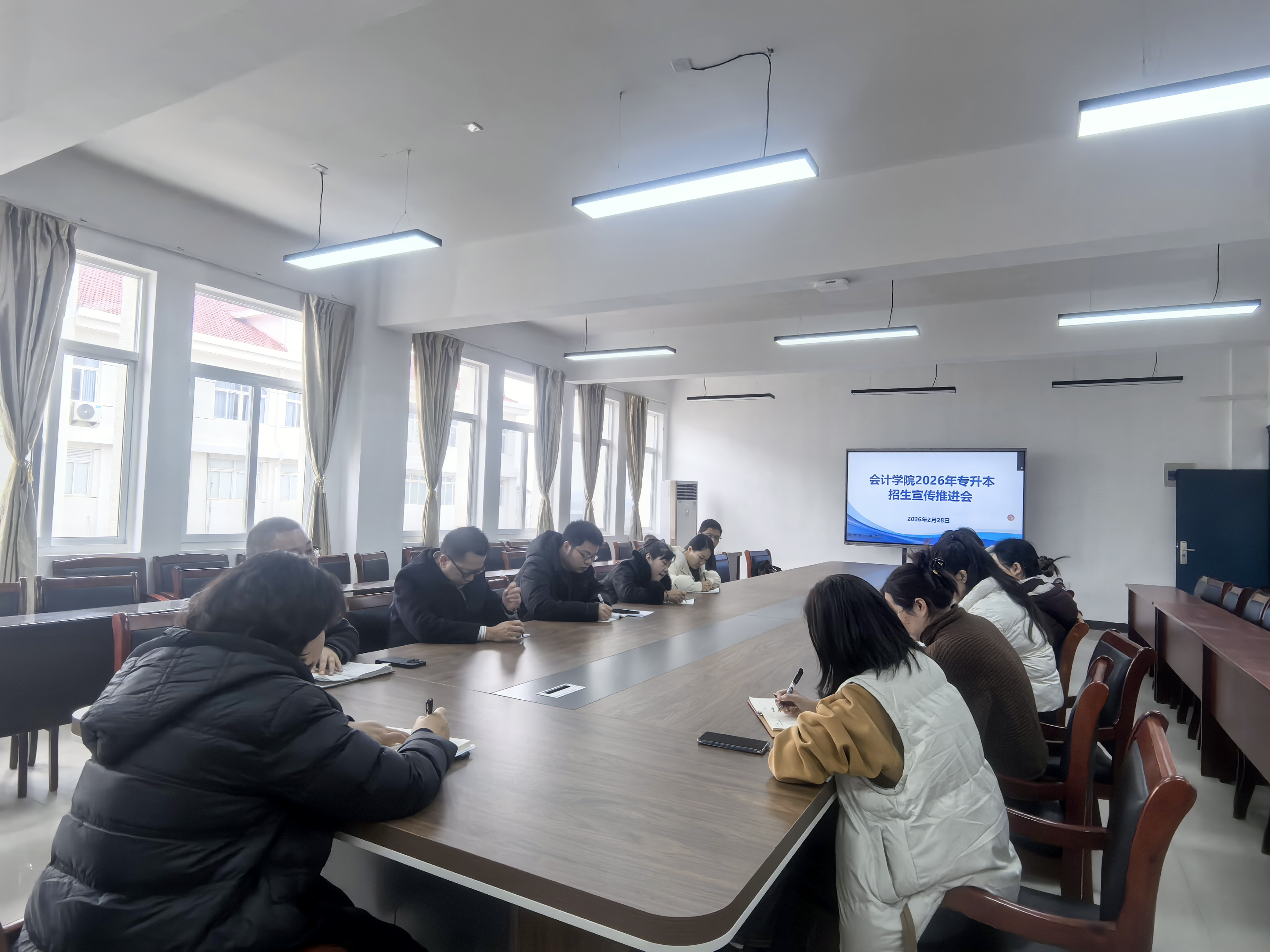 为扎实推进2026年专升本招生工作,2月28日,会计学院召开专升本招生宣传推进会。会议由执行院长石惠惠主持,副院长刁建刚、各教研室主任以及全体辅导员参加会议。