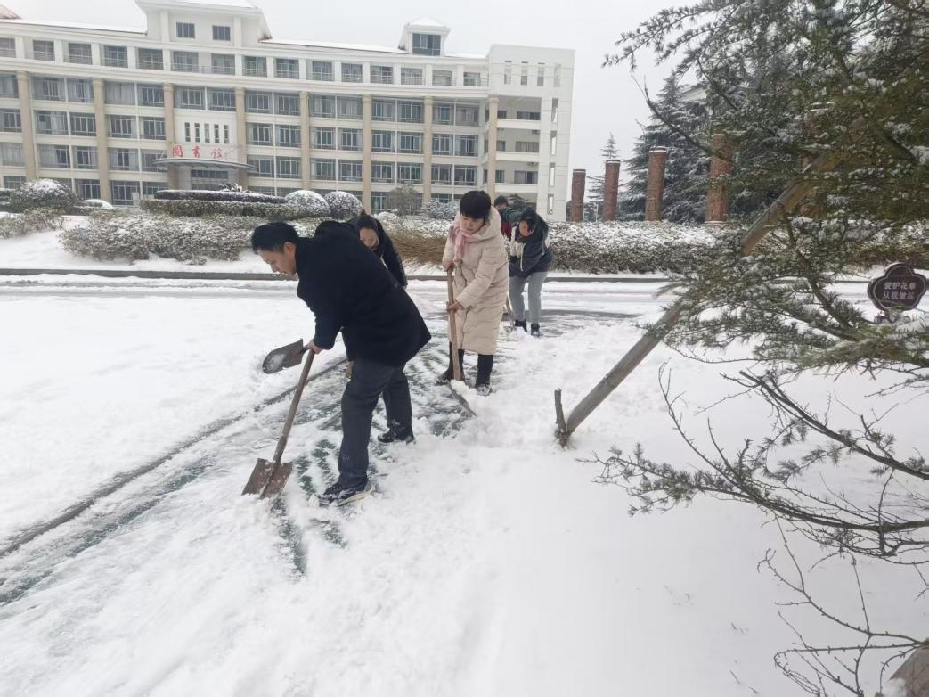 寒风刺骨,热情不减。经过三个多小时的持续奋战,校园主要干道及十余处易滑台阶的积雪结冰被彻底清除,通行安全隐患得以消除,师生出行之路恢复畅通。