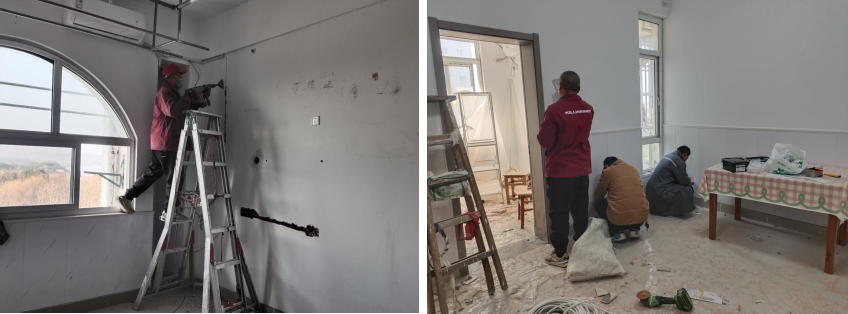 他们迎风斗雪,在确保安全的前提下灵活调度,有序开展室内规整、墙面粉刷、水电改造及设备安装等作业;他们起早贪黑,精心施工,严把每道工序的质量与安全。施工现场,敲击声、机器声与风雪声交织,奏响了一曲冬日的施工赞歌。许多后勤职工放弃休息日,持续投入指挥协调、材料供应与现场监管等工作,全力保障工程稳步推进。