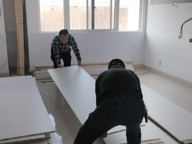 改造工程于1月中旬全面展开,旧家具拆除与材料预备工作率先推进。随后,持续低温雨雪天气为物资运输与室外作业带来严峻考验。后勤基建、采购、物业等部门职工与施工单位并肩作战,凝聚成一支敢打硬仗的“后勤铁军”。