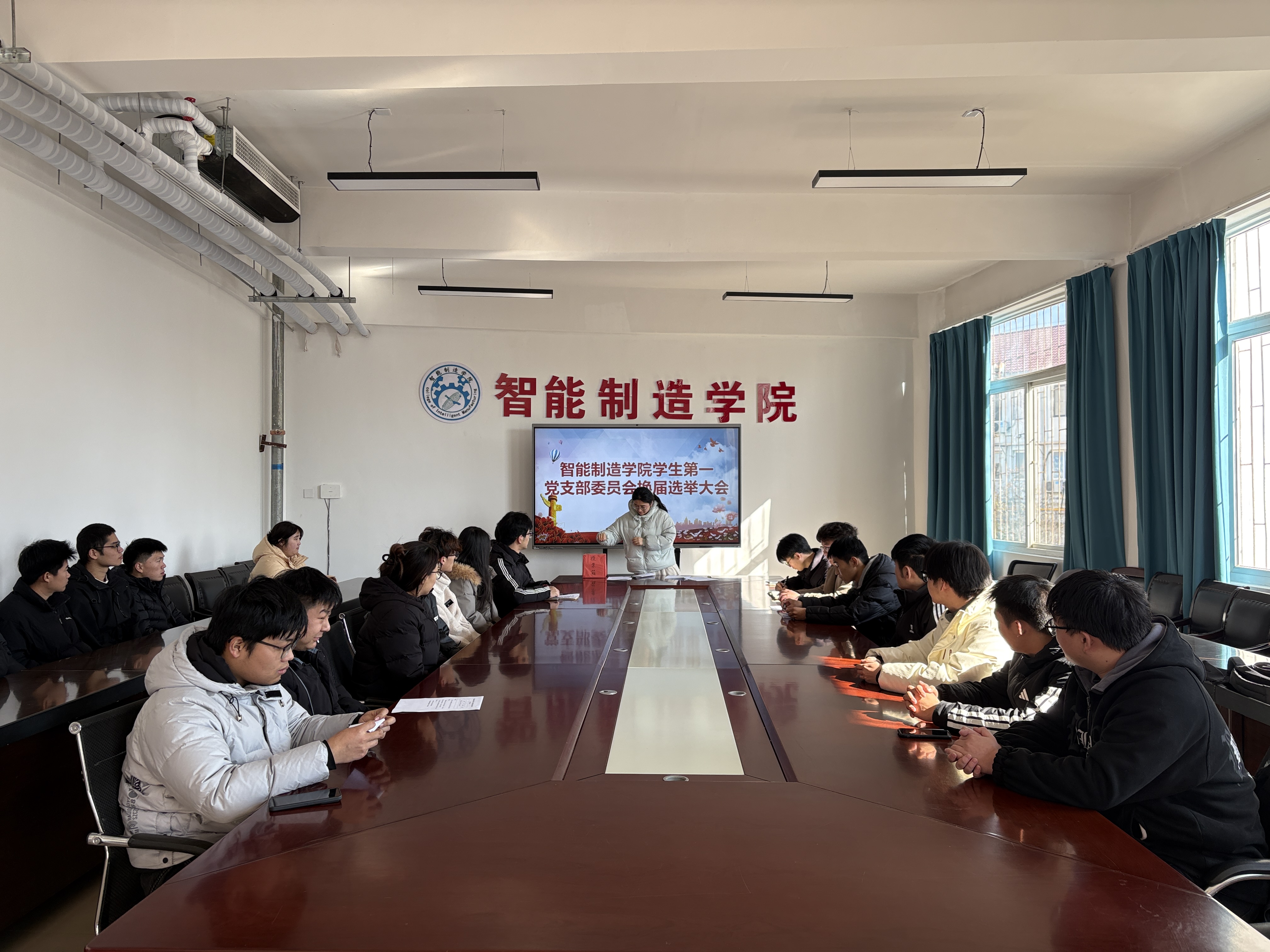 为进一步加强基层党组织建设,优化党支部班子结构,充分发挥党支部的战斗堡垒作用,2025年12月26日中午,智能制造学院学生第一党支部在天佑楼会议室举行支部换届选举党员大会。大会由支部书记汪琴同志主持,支部全体党员参会。