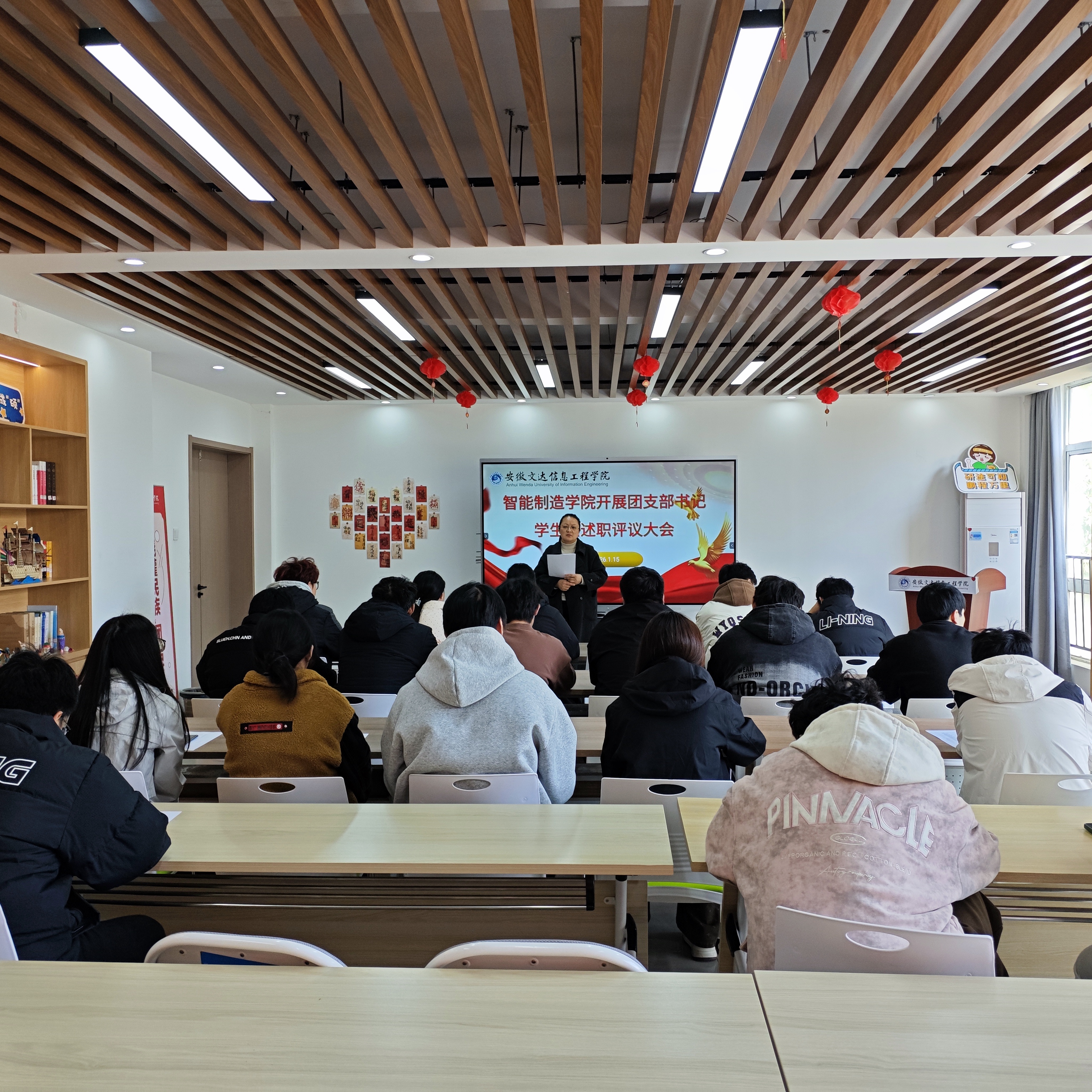 1月15日,智能制造学院团支部年终评议会议在勤学社区活动室召开,学院全体团支部书记参会,会议由学院团总支书记储红姣主持。