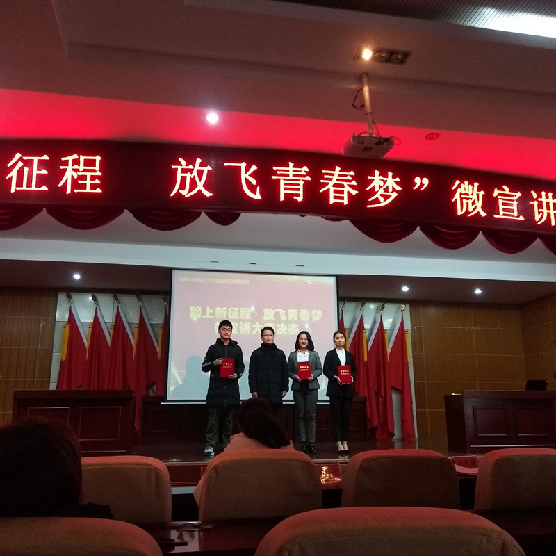 1月4日上午,“踏上新征程 放飞青春梦”微宣讲大赛决赛在校学术报告厅隆重举行。我院学子积极参加,披荆斩棘,取得佳绩。其中18机械设计对口班马继彪同学获得一等奖,18电气工程班徐瑞同学获得二等奖,18材料成型班朱程同学获得三等奖。