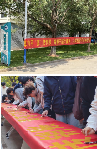 为进一步增强学生防范传销的意识和能力,守护校园安全与学生合法权益,10月22日,计算机工程学院在一站式“笃行社区”举办了“算力不‘算’传销账,青春不陷诈骗网,计算机学子签名护成长”主题横幅签名活动,学院师生积极参与,现场氛围热烈。