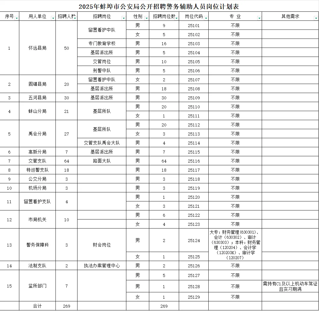 此次招聘警务辅助人员269名(详见附件:岗位计划表)。
