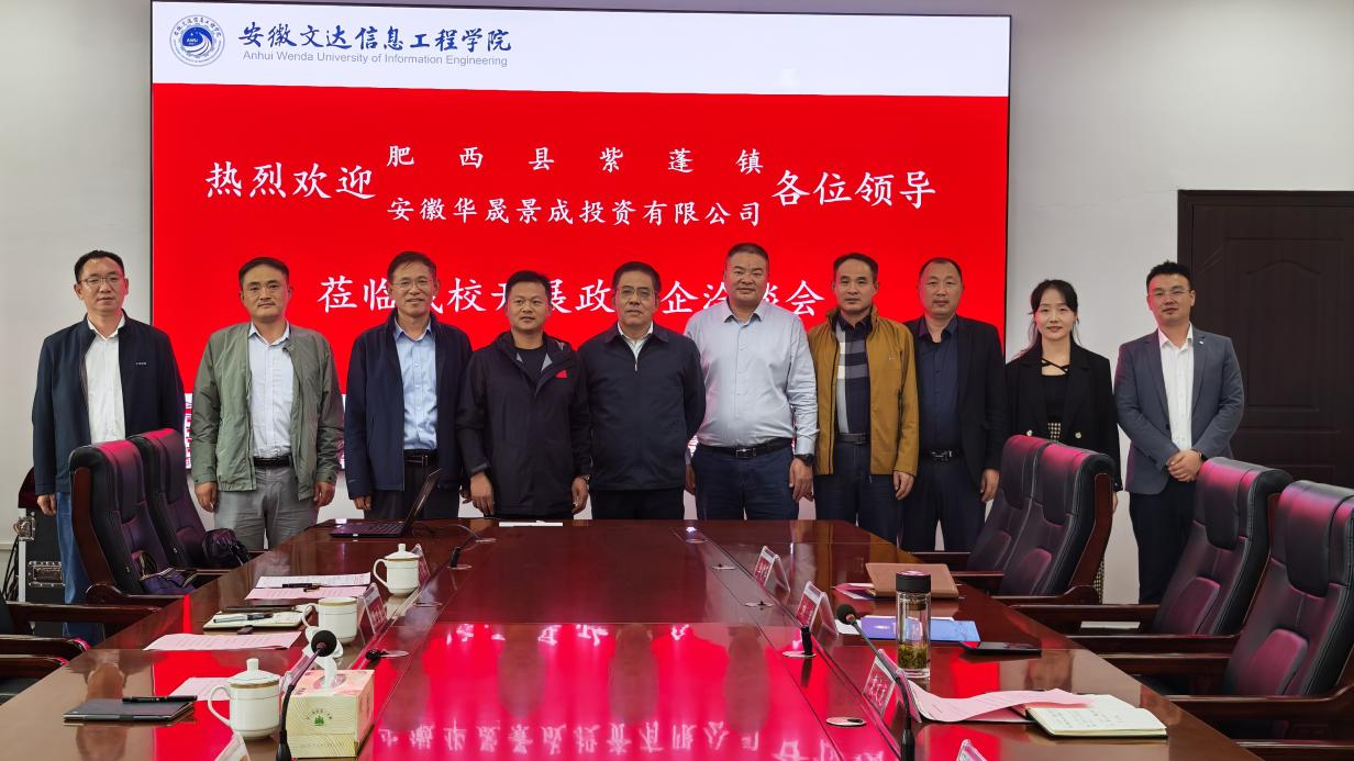 10月15日下午,我校在图书馆三楼第一会议室,隆重举办以“赋能毕业生就业、深化政校企协同”为主题的政校企洽谈会。肥西县紫蓬镇党委副书记袁军、组织办主任汪贤城,安徽华晟景成投资有限公司董事长王芳明、合肥华晟光伏科技有限公司行政负责人杨文嘉等企业代表,与校领导及相关部门负责人齐聚一堂,共商合作事宜,会议由招生就业处处长刘宏主持。