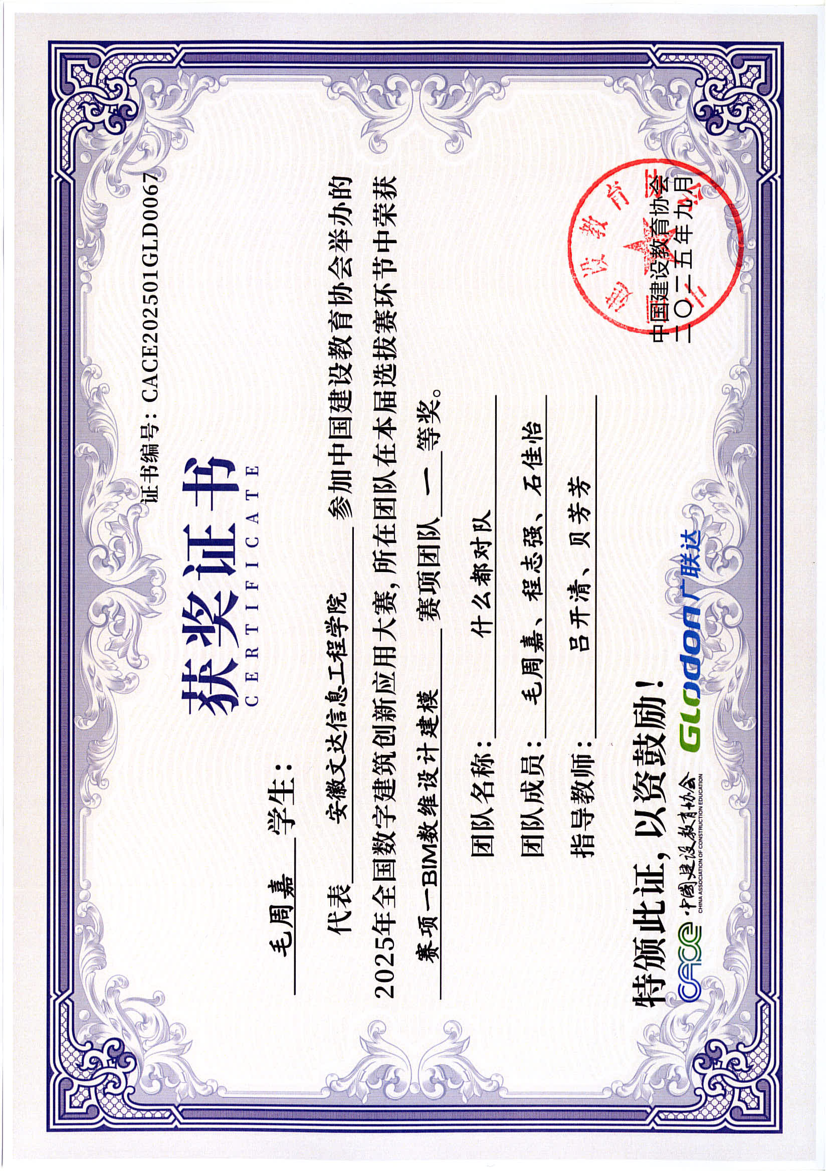 喜报!我院学子在全国数字建筑创新应用大赛中斩获一等奖