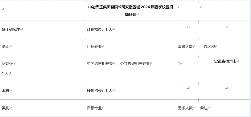 中冶天工集团有限公司2026届校园招聘简章(安徽区域)