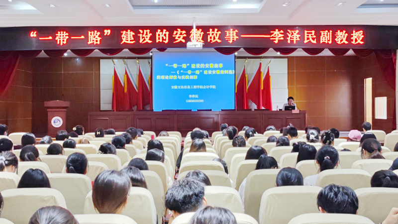 4月19日下午,会计学院李泽民副教授在学术报告厅为我校师生开展了主题为《“‘一带一路’建设的安徽故事”的理论探索与实践创新》的学术讲座。讲座由会计学院执行院长石惠惠主持。