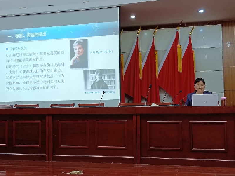 桑士林以《情感与认知图式》为题,介绍了认知心理学中的认知—情感图式理论和法国思想家德勒兹的“情动”理论,并从这两个理论视角出发对英国现当代学院派女作家A.S.拜厄特的小说《占有》和艾丽丝·默多克的小说《大海啊,大海》进行了主人公形象阐释,以此剖析了情感与认知的关系,提升作为现代主体的我们的自省意识,在实践中不断纠正更新图式,理智客观地认知广阔世界。
