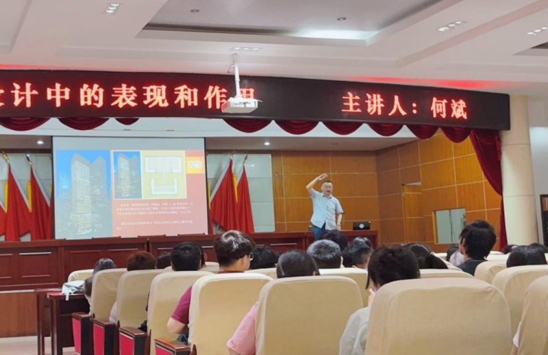 何斌以《灯光在艺术设计中的表现作用》为题,向全体师生介绍了光融入空间、光融入艺术、光融入生活、灯光设计的三原则、光的逻辑等内容,并通过一些经典的建筑灯光设计作品的分析,让我们了解到当下的灯光早已不是简单的照明工具,更是提升空间艺术特征的有效手段,科学合理的灯光设计可以起到画龙点睛的作用。