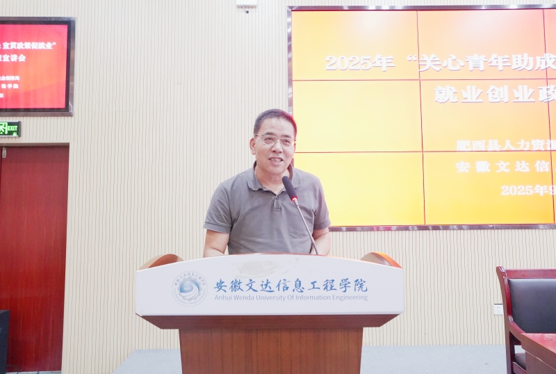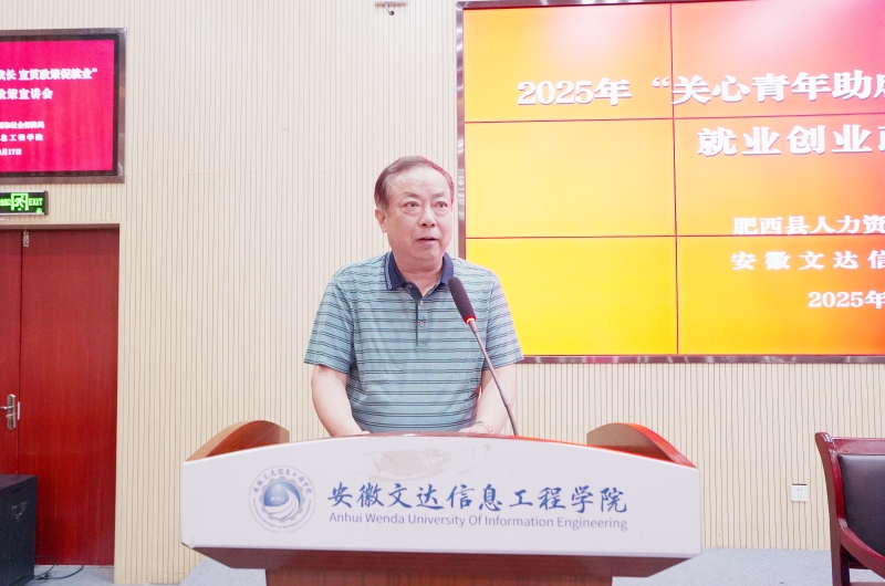 9月17日下午,肥西县人社局联合我校举办“关心青年助成长 宣贯政策促就业” 宣讲会。肥西县人力资源与社会保障局关工委主任李侠法、工会主席王华友、机关党委副书记吴傩军、人才综合服务中心主任吴金龙,我校副校长袁文龙等出席活动,学校各二级学院分管就业工作领导、全体2026届毕业班辅导员以及100余名2026届毕业生参加会议,会议由招生就业处处长刘宏主持。