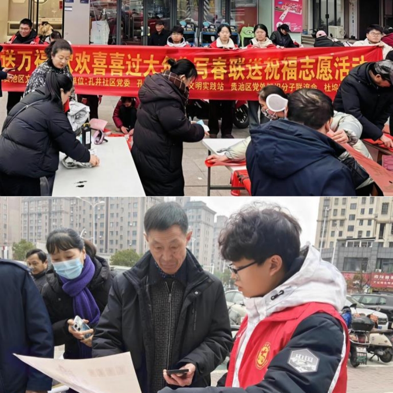 笔墨传情,温暖新春。在池州市贵池区孔井社区,动画专业学生吴鑫化身传统文化的接力者。他协助书法老师备笔墨、铺红纸、晾春联,并将一幅幅满载祝福的春联福字送到居民手中。“在笔墨飘香中,我不仅感受到了中华优秀传统文化的魅力,更体会到了服务邻里、传递温暖的快乐与价值。”他在实践中感悟,青年的责任担当就蕴藏在这样看似平凡却充满温情的服务之中。