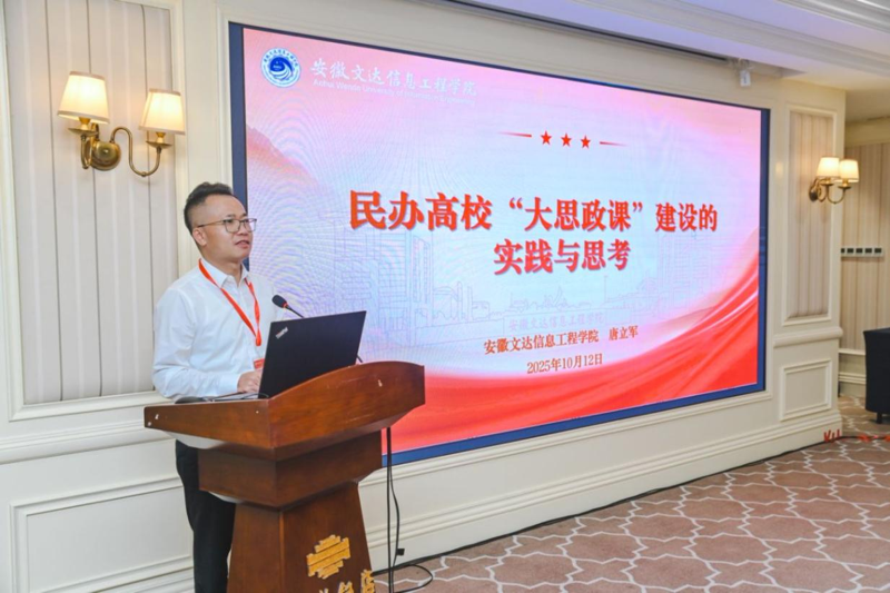 唐立军代表我校在会上作题为《民办高校“大思政课”建设的实践与思考》的主旨发言。他围绕“大思政课”建设的核心要求,从“格局、课堂、师资、平台”四个维度介绍了我校破题发力,探索具有民办特色、贴合区域实际的育人经验。